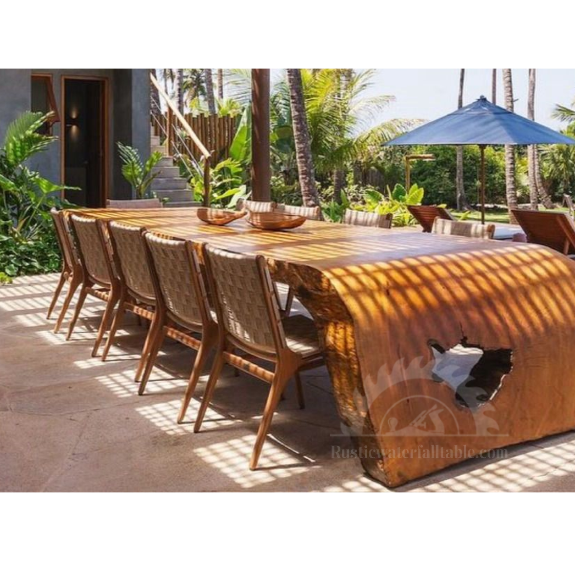 Every Rustic Waterfall Table is carved from a massive tree trunk, hand-finished by master artisans. No two pieces are ever alike.