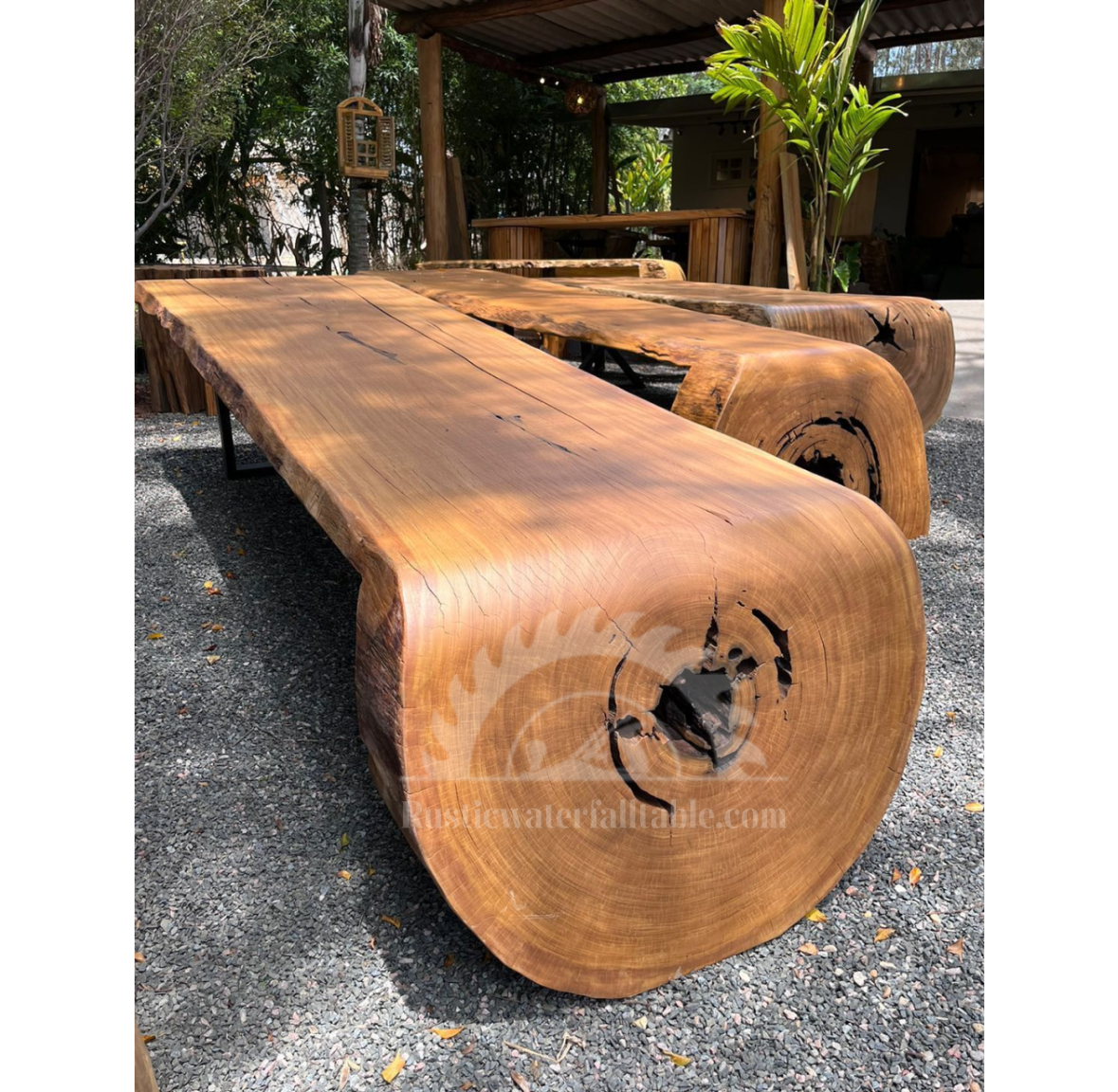 Every Rustic Waterfall Table is carved from a massive tree trunk, hand-finished by master artisans. No two pieces are ever alike.